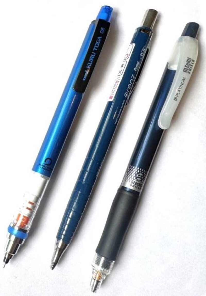 3本のシャープペンで試してみると、クルトガでは線の安定感、オ・レーヌでは軽い筆圧でもしっかり書ける点、オレンズでは細い線でも視認性が落ちにくい点が印象に残りました。