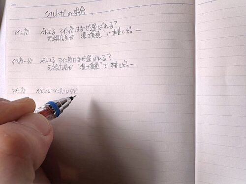 クルトガのように線が均一に出るシャープペンと組み合わせると、文字の濃さと整い方が揃い、